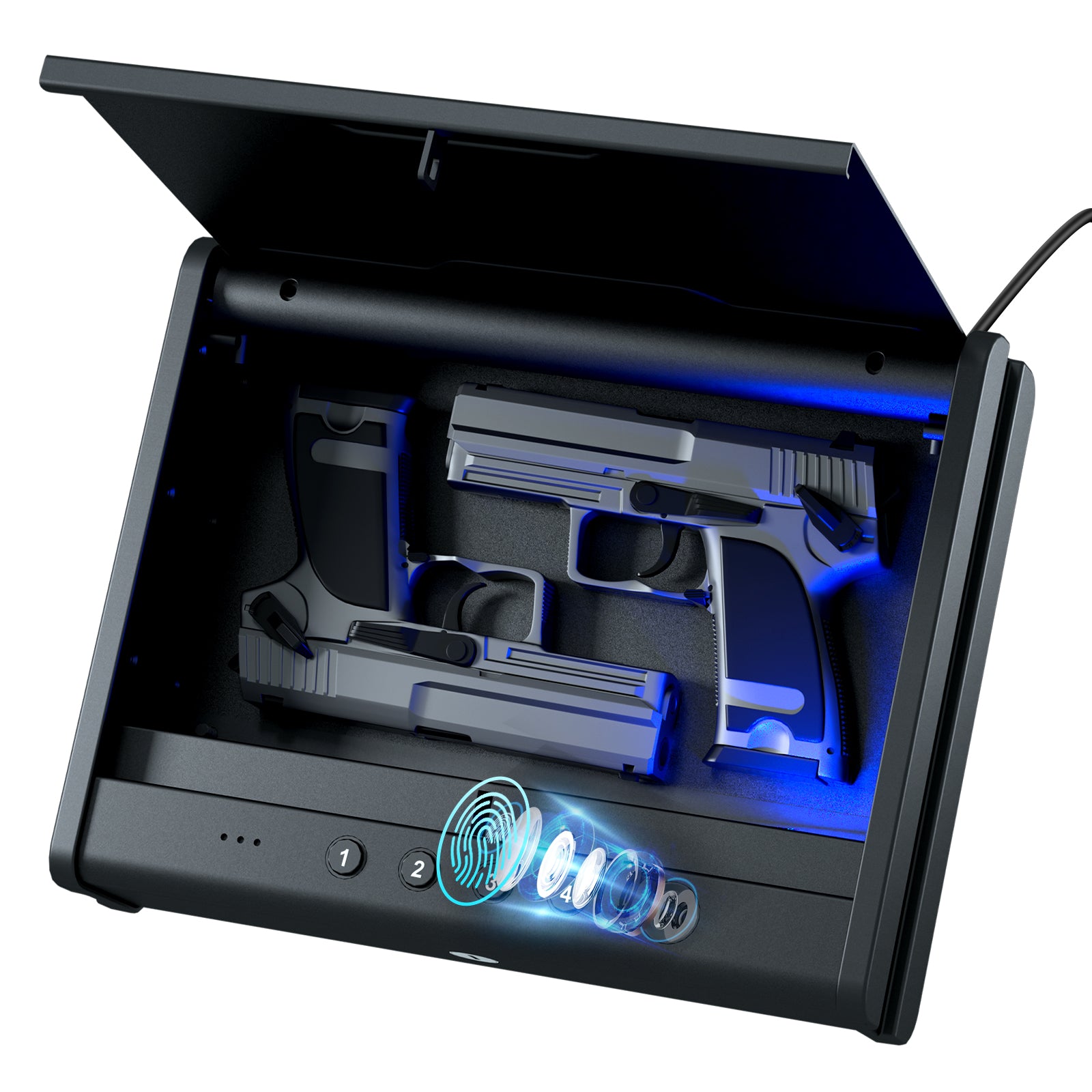 PINEWORLD Biometric Gun Safe K1 For Handgun, Pistols Safe With Fingerprint, 3 Ways Quick Access Gun Lock Box for Firearm